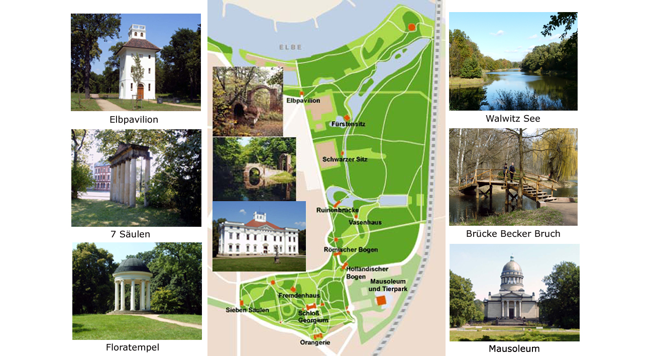 Die Karte mit Sehenswürdigkeiten in der Umgebung von Dessau / Wittenberg